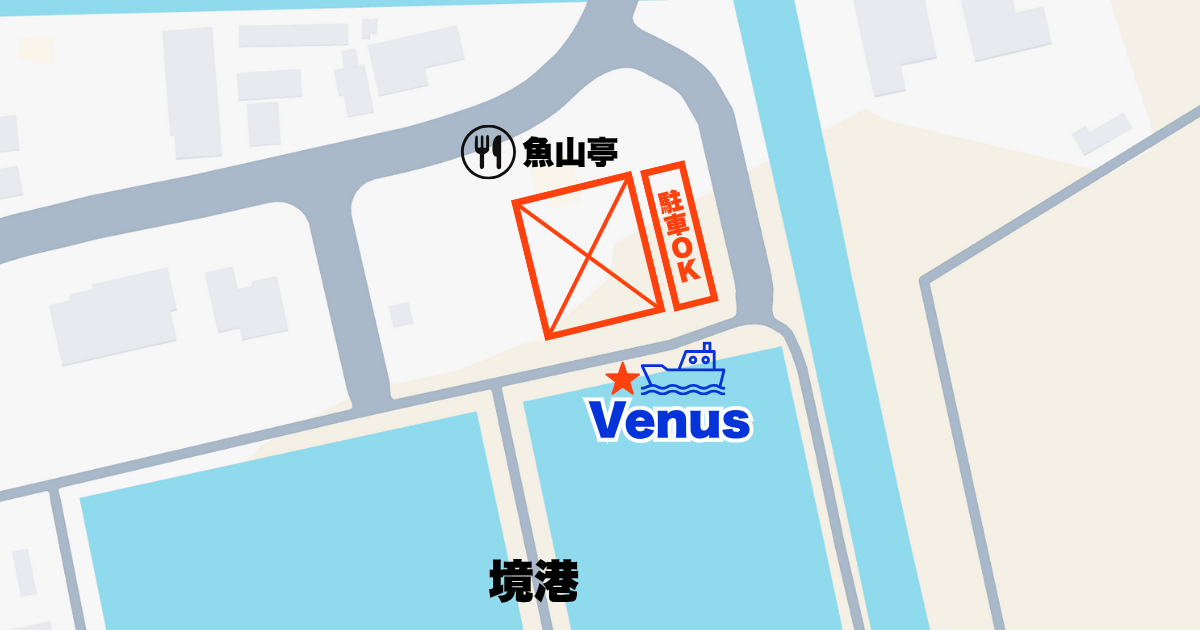 鳥取の釣り船 Venus(ビーナス)の乗船場所と、駐車場についてご案内いたします。